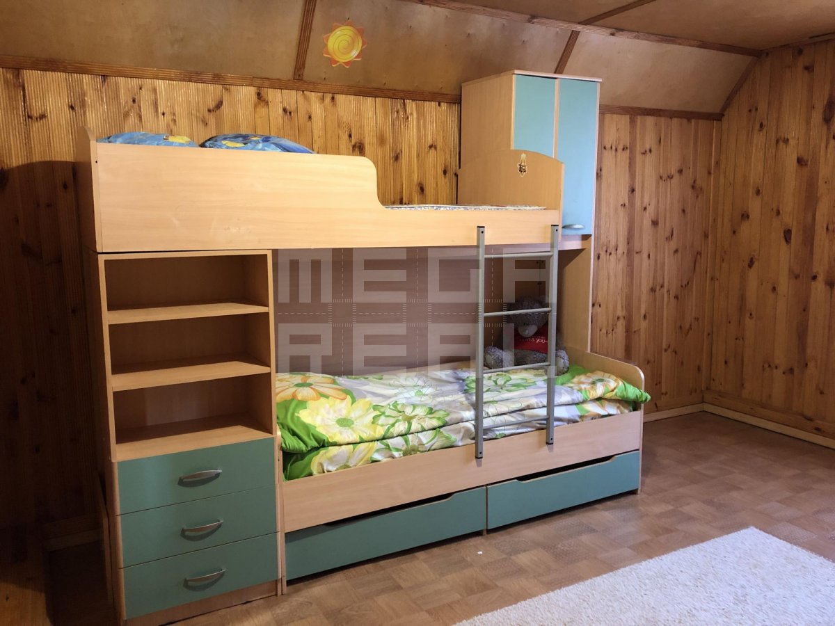 Дом 120м2, первый этаж кирпич, второй брус, утеплён и обшит сайдингом. На 1 этаже расположен большой зал с камином, кухня и спальная комната. На 2 этаже 2 комнаты и балкон.