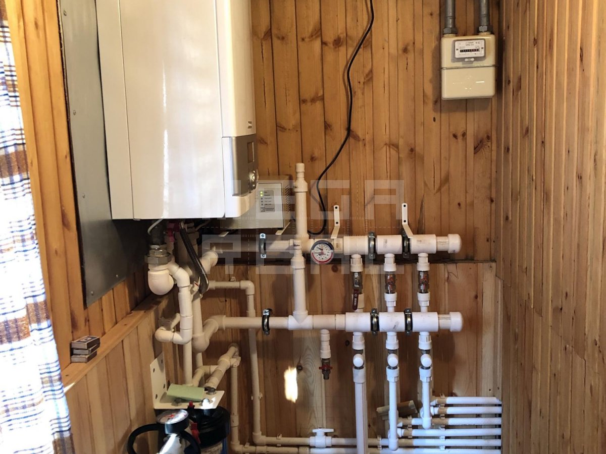 Отопление- газовое, 2-х контурный котел( разводка: 1, 2 этаж и баня). Отапливается 2 этажа и баня.